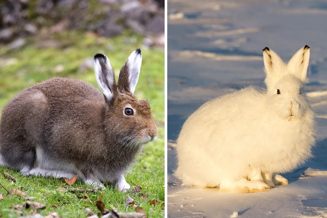 - Иллюстрации зайца в разное время года.