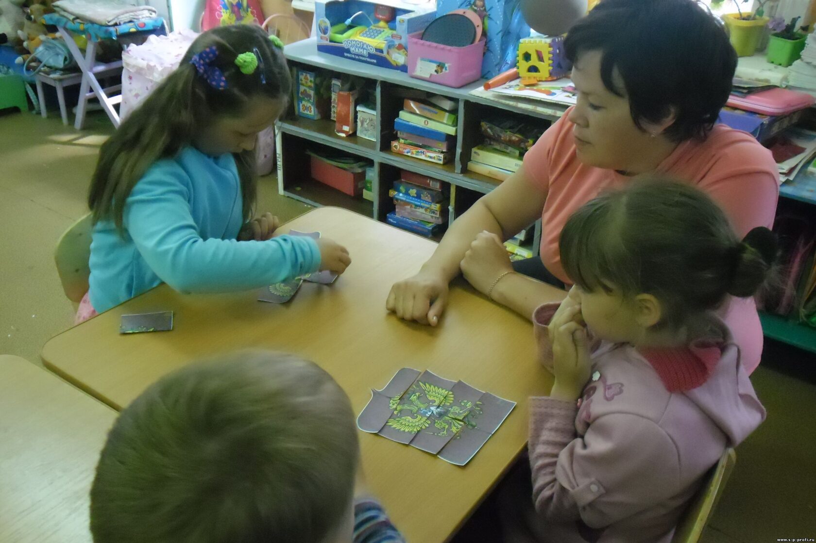 - Развивать мелкую моторику в играх с предметами (сборка герба, флага).